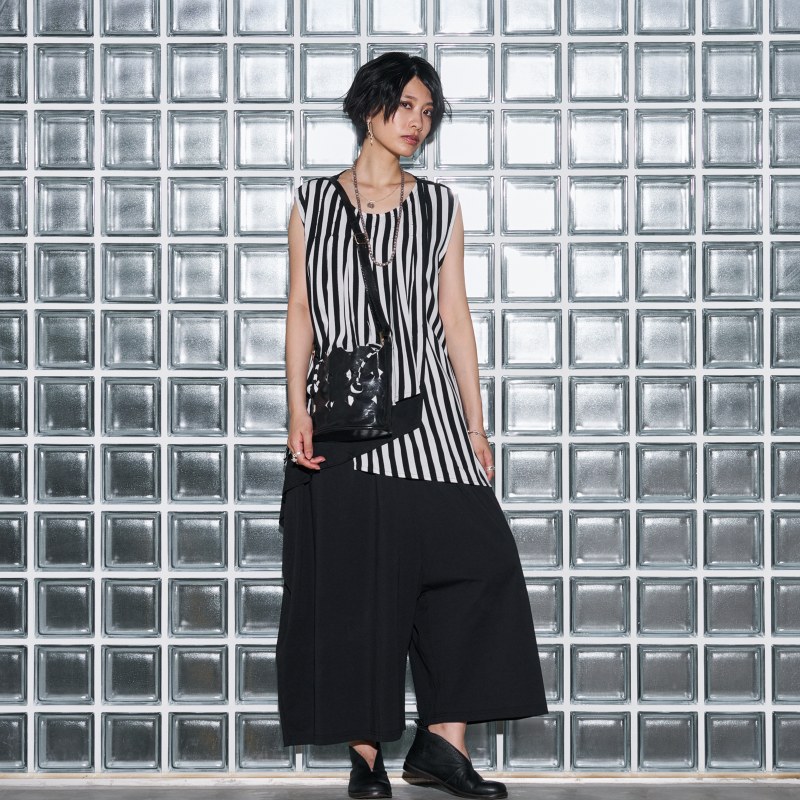 モード感を意識したアイテムを展開。変形デザインや落ち感のある生地にこだわったひと味違うモードエスニック。モノトーンなラインナップでクールな印象のファッションブランド。