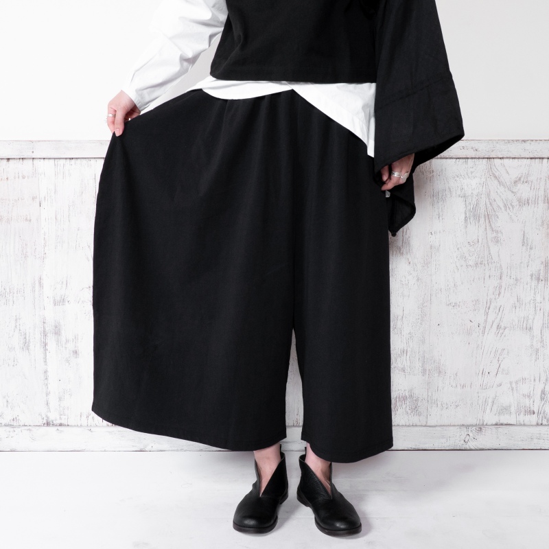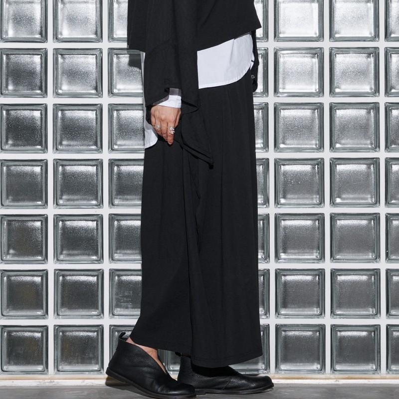 ボリューム感の異なるアシンメトリーが印象的なワイドパンツ。シンプルながら、大胆なデザインがポイント。カットソー素材のシリーズはリラックス感のある着心地で、デイリー使いにピッタリ。ゆったりとしたラインに仕上げ、ボリュームのあるアイテムやショート丈のアイテムと合わせた着こなしがおすすめです。