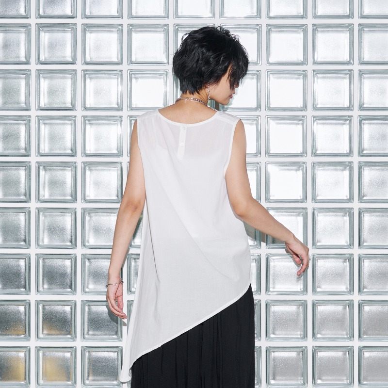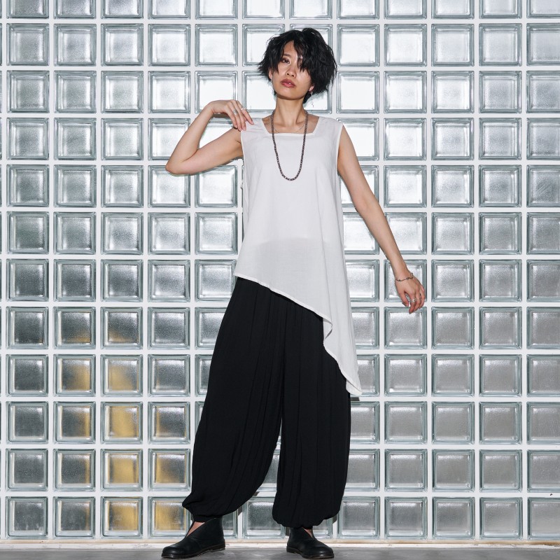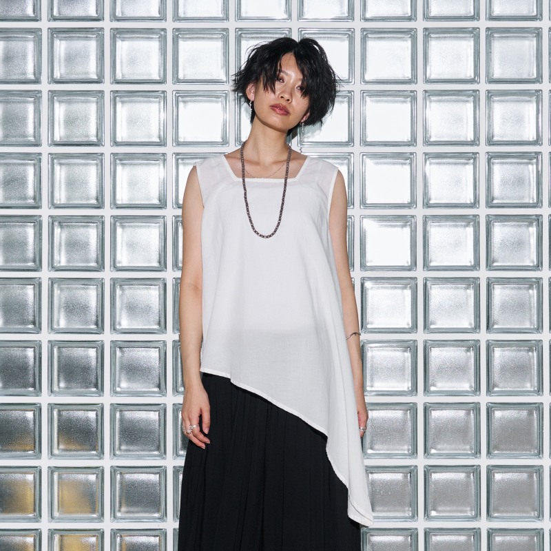 モノトーンコーデに欠かせない着回し力抜群のインナープルオーバー。単調になりがちなモノトーンコーデにアクセントをプラスするアイテム。甘さを一切カットしたスクエアネックがポイント。エッジのあるアシンメトリーデザインなので、レイヤードコーデのインナーにするだけで、スパイスの効いたコーディネートが完成。様々なモノトーンコーデで活躍するシンプルなアイテムです。