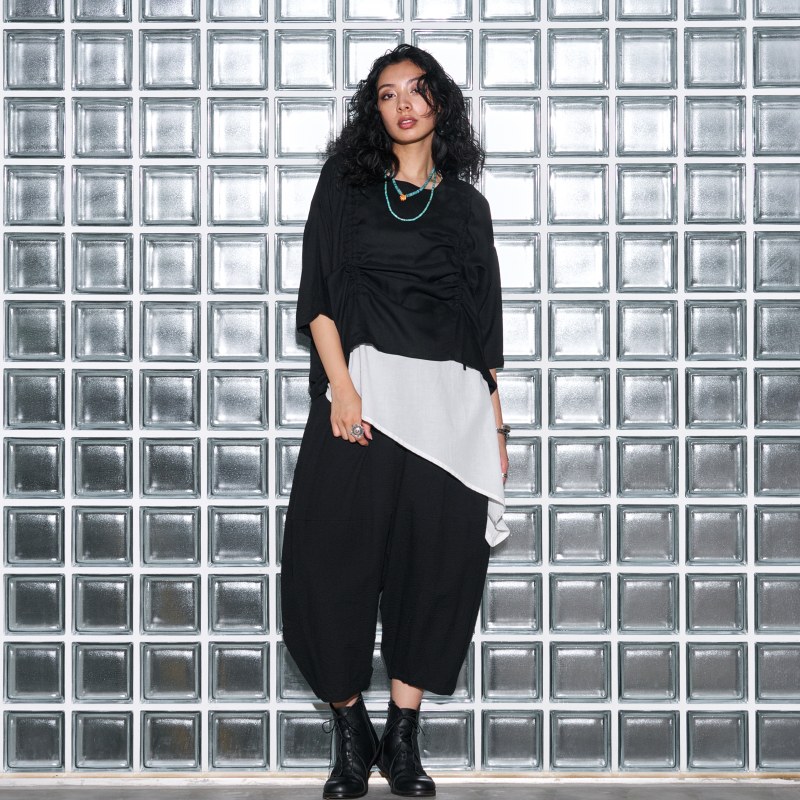 モード感を意識したアイテムを展開。変形デザインや落ち感のある生地にこだわったひと味違うモードエスニック。モノトーンなラインナップでクールな印象のファッションブランド。