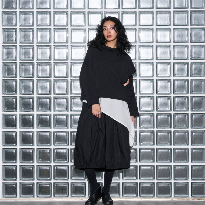 アシンメトリーにカットしたデザインが特徴のプルオーバー