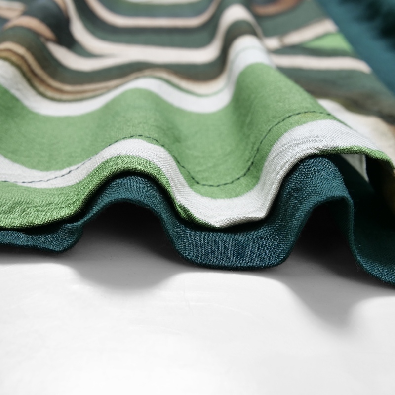インド、ウッタルプラデーシュ州の工房で、丁寧に手描きされた布と無地を組み合わせたシリーズ