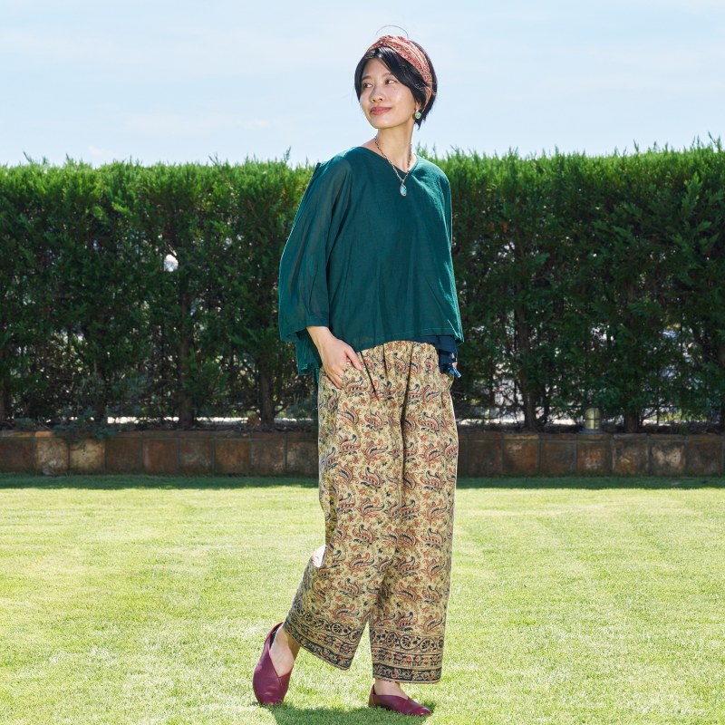 ブロックプリントコンビブラウス 【メール便可】