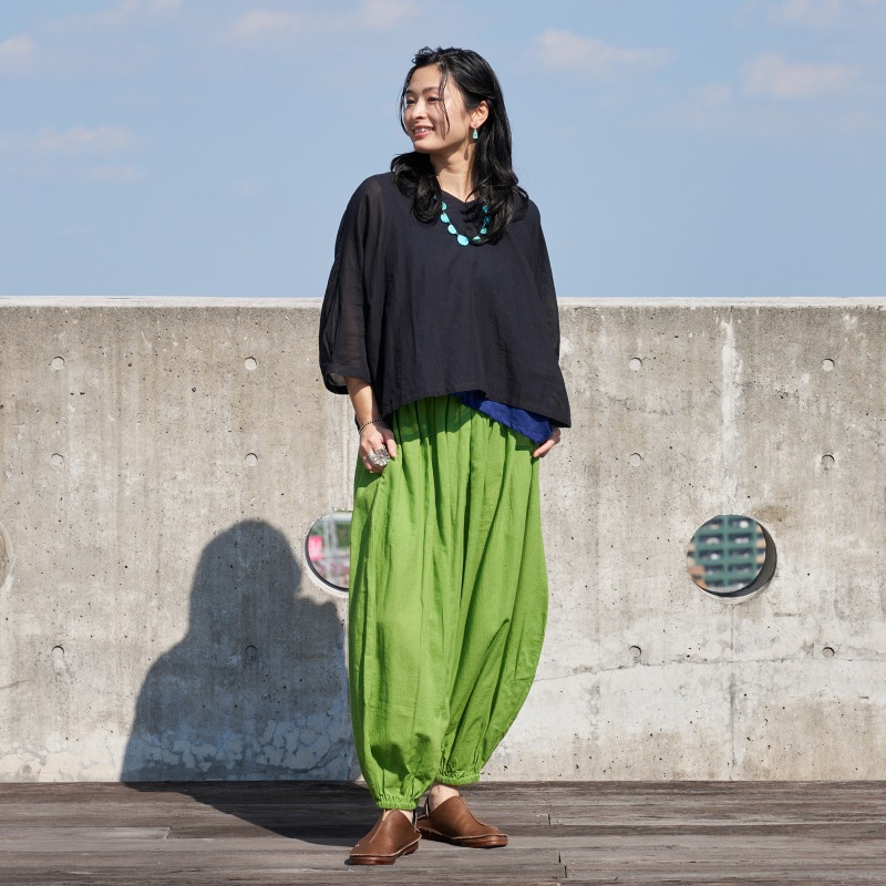 | 生地 | 薄手。透け感あり。柔らかく軽やかな着心地の生地。 |
