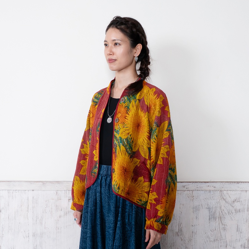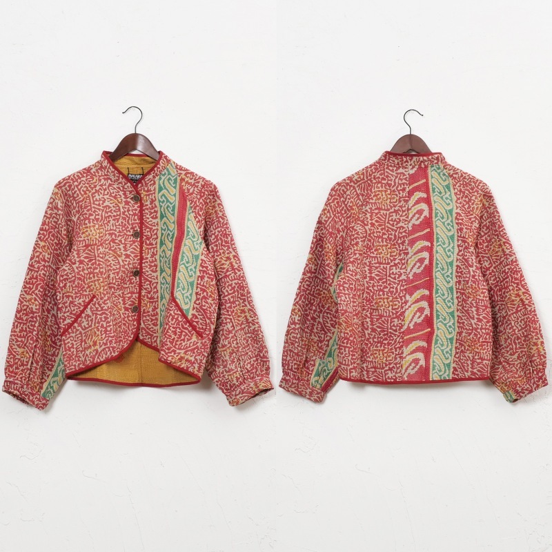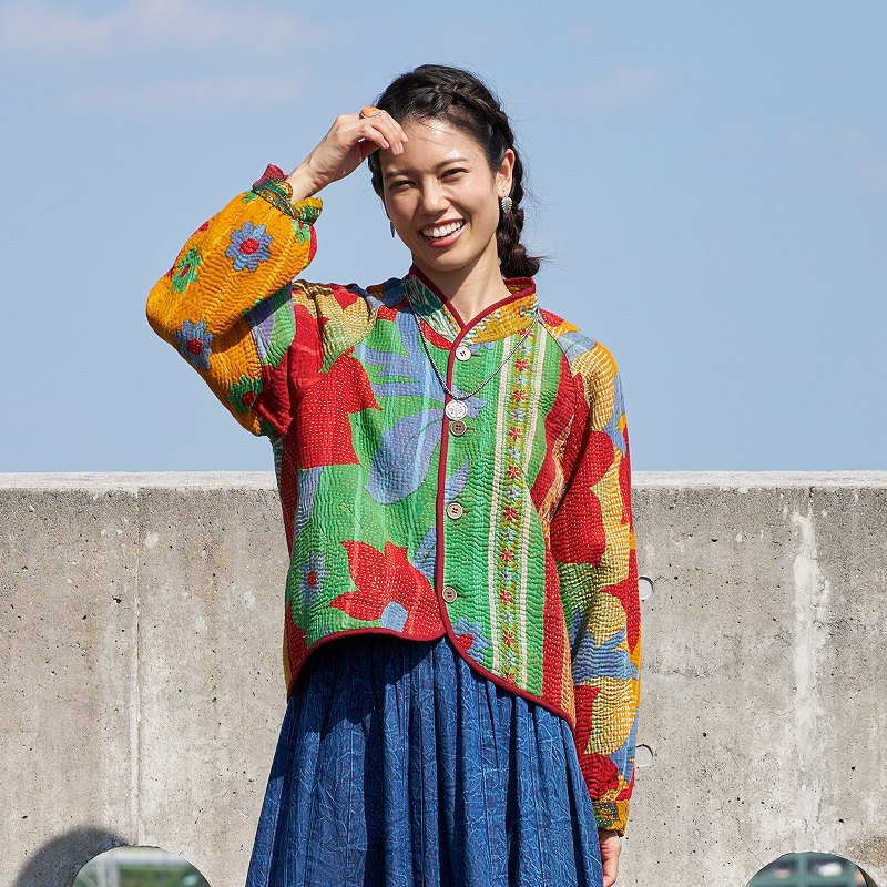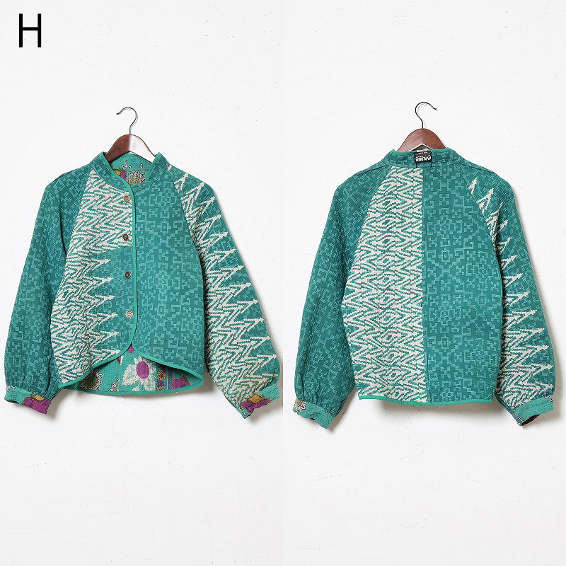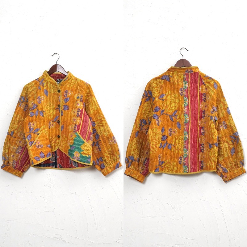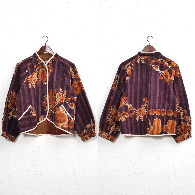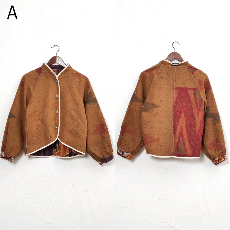 長く愛されるインドのグドゥリー生地で仕立てたリバーシブルジャケット。生地の組み合わせはすべて異なる1点もので、表裏で印象の異なるリバーシブル仕様なのもポイントです。ラグランスリーブでカジュアルなテイストに、スタンドカラーとショート丈ですっきり見えするデザインにしました。前立てやポケット、裾に施されたパイピングがアクセントになり、コーディネートを引き立てます。季節の変わり目におすすめのアウターです。