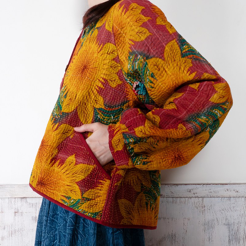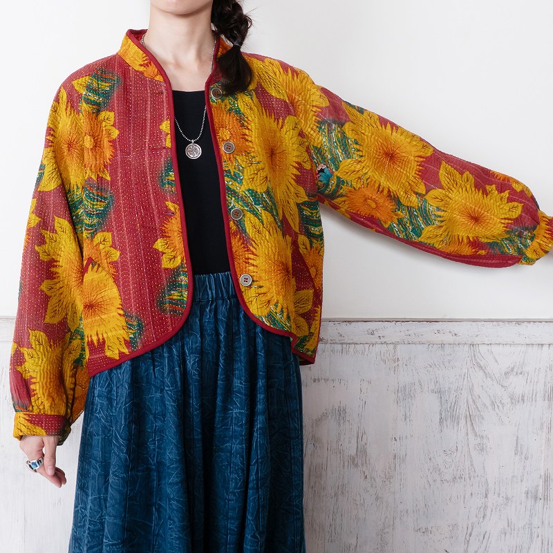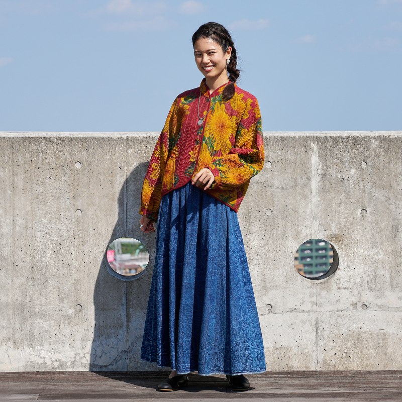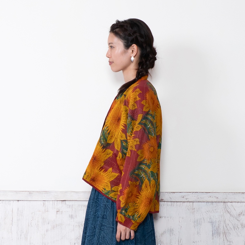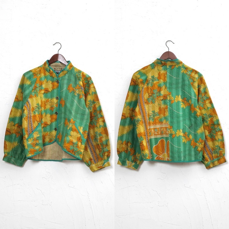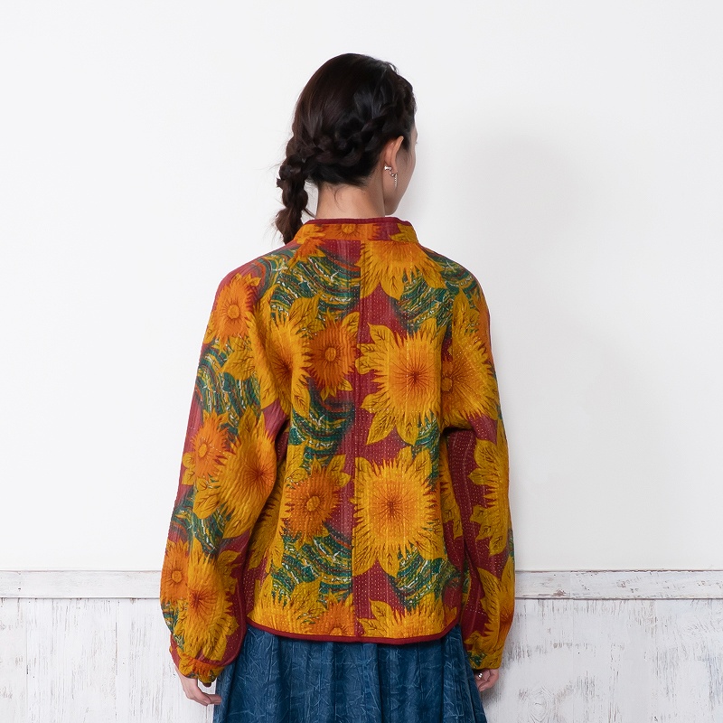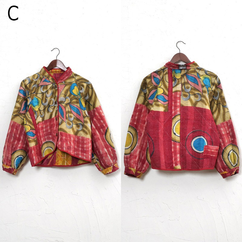 長く愛されるインドのグドゥリー生地で仕立てたリバーシブルジャケット。生地の組み合わせはすべて異なる1点もので、表裏で印象の異なるリバーシブル仕様なのもポイントです。ラグランスリーブでカジュアルなテイストに、スタンドカラーとショート丈ですっきり見えするデザインにしました。前立てやポケット、裾に施されたパイピングがアクセントになり、コーディネートを引き立てます。季節の変わり目におすすめのアウターです。