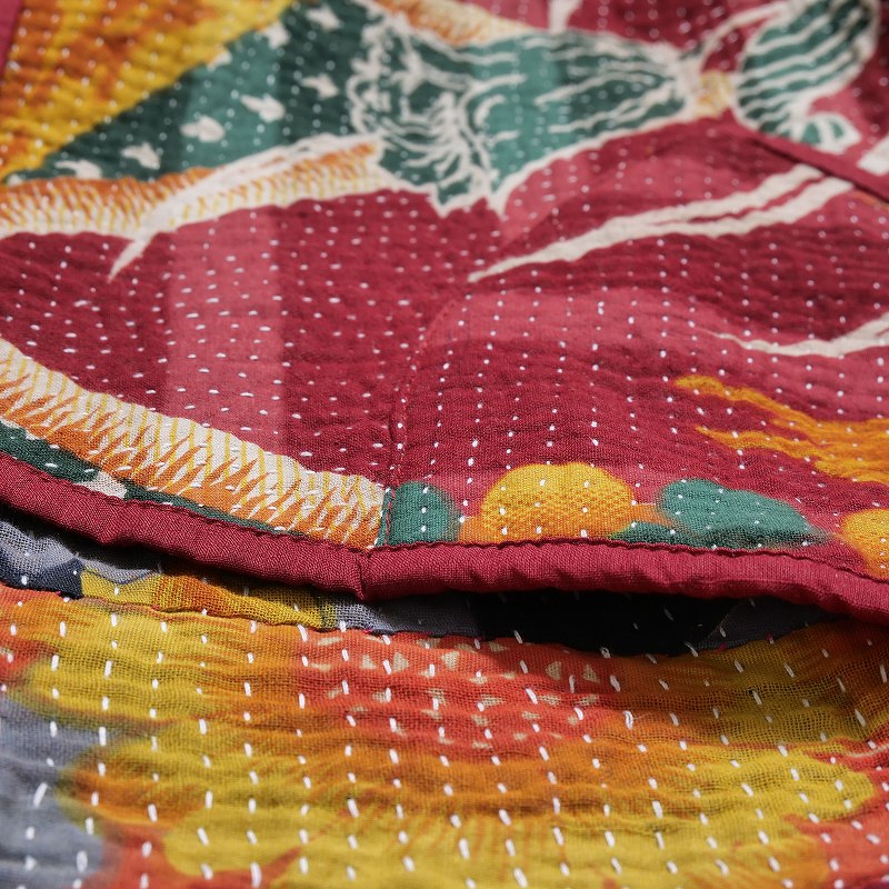 グドゥリー(Gudri)は西インドのグジャラートからきた刺し子を示す言葉です。別名ラリーキルトとも。着古した布を補強するため、二枚重ねにして布を繋ぎ上から刺し子を施していきます。 ものを大事にする心から生まれたこの伝統技法により、時間と手間をかけて布が新しく生まれ変わります。