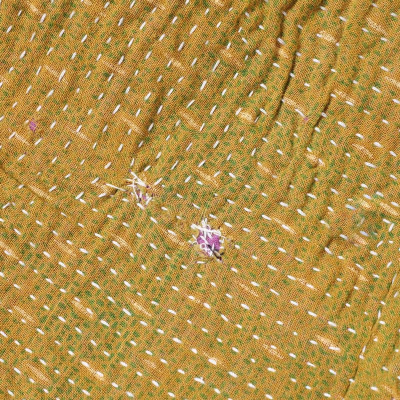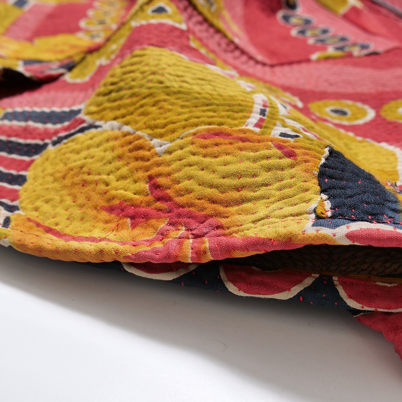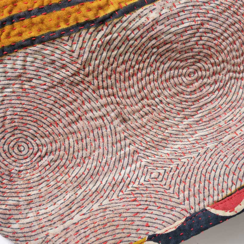 グドゥリー(Gudri)は西インドのグジャラートからきた刺し子を示す言葉です。別名ラリーキルトとも。着古した布を補強するため、二枚重ねにして布を繋ぎ上から刺し子を施していきます。 ものを大事にする心から生まれたこの伝統技法により、時間と手間をかけて布が新しく生まれ変わります。