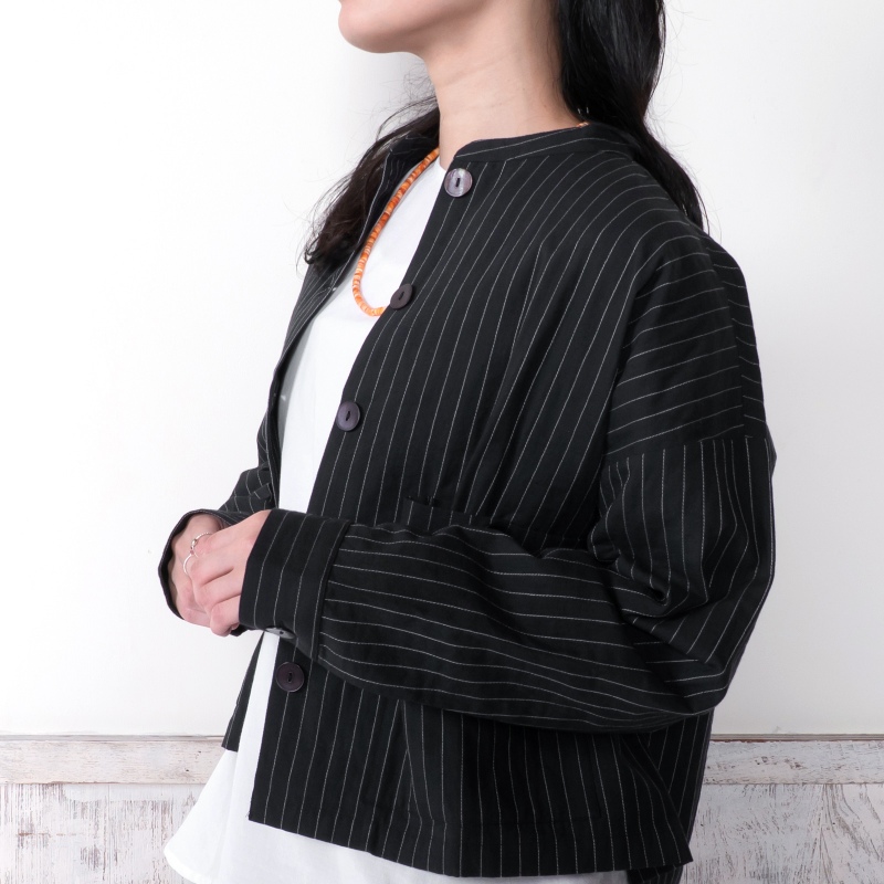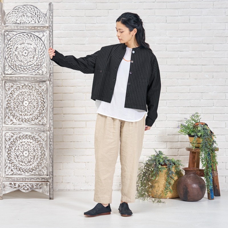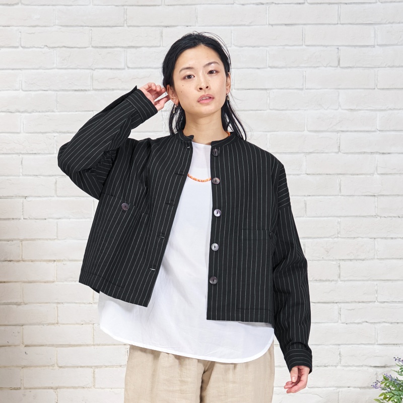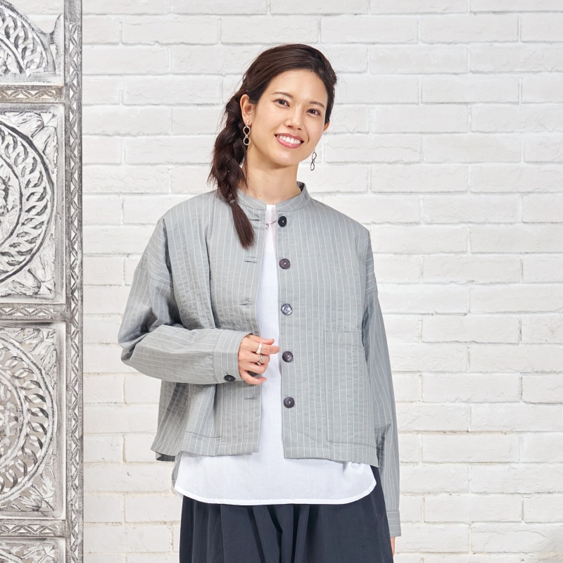 季節の変わり目に欠かせない薄手のアウターはこれからの時期活躍間違いなし。ほどよい厚みと柔らかさがあり、軽やかに羽織れる一枚です。大き目のボタンがアクセントになり、シンプルな着こなしのポイントになります。コンパクトな丈感でバランスが取りやすく、カジュアルにもきれいめにも活躍します。