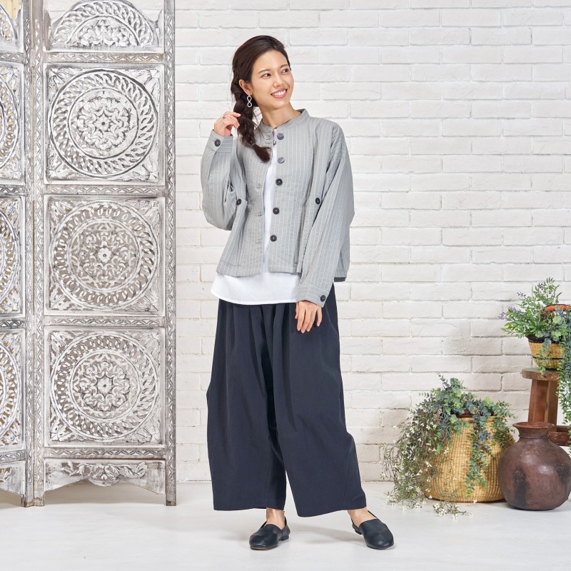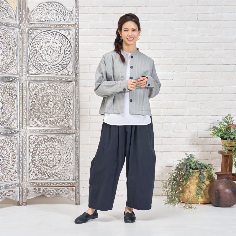 ヒンディー語で"村"という意味。都会の喧騒を離れて、自然のものと、自然に暮らす。そんな心地よい暮らしをテーマにしています。ナチュラルなで素朴な質感や着心地の良い素材。個性豊かで緩やかなシルエットが特徴のブランド。