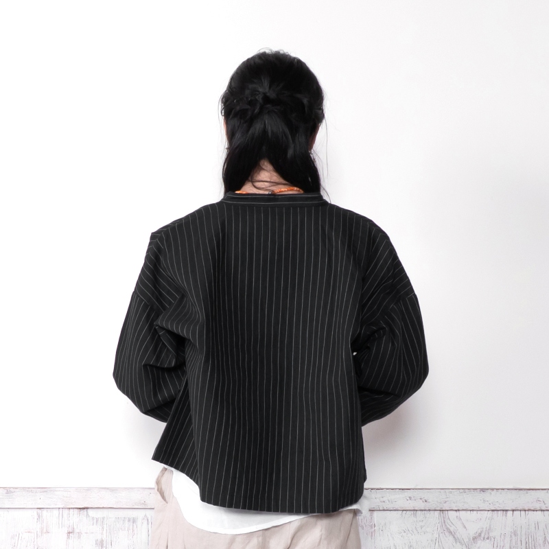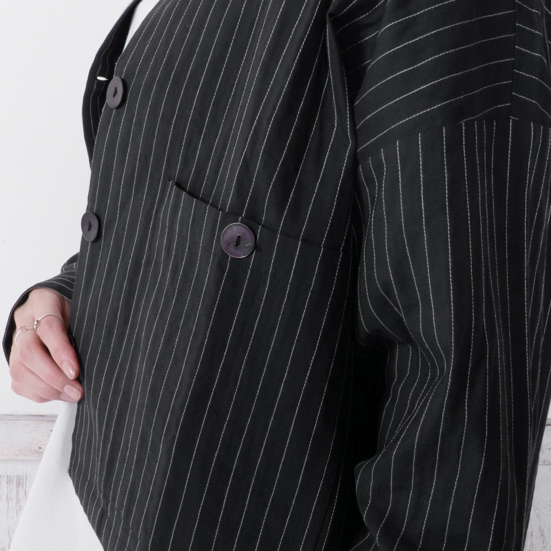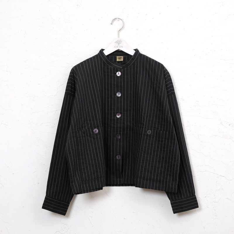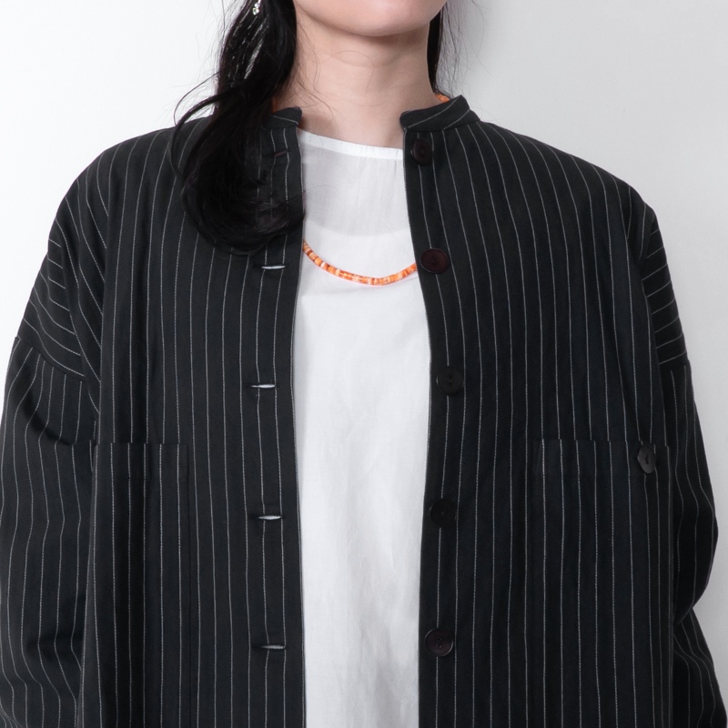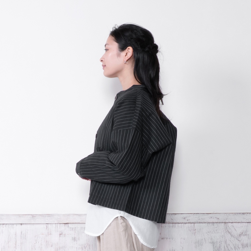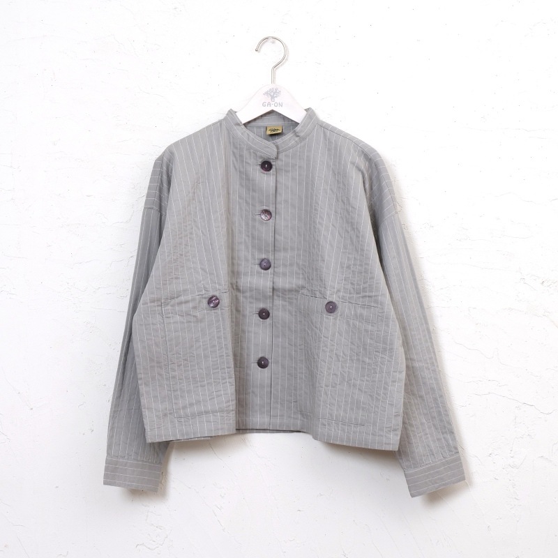 | 仕様 | スタンドカラー 前あき・袖口・ポケットボタン付き 袖口カフス |