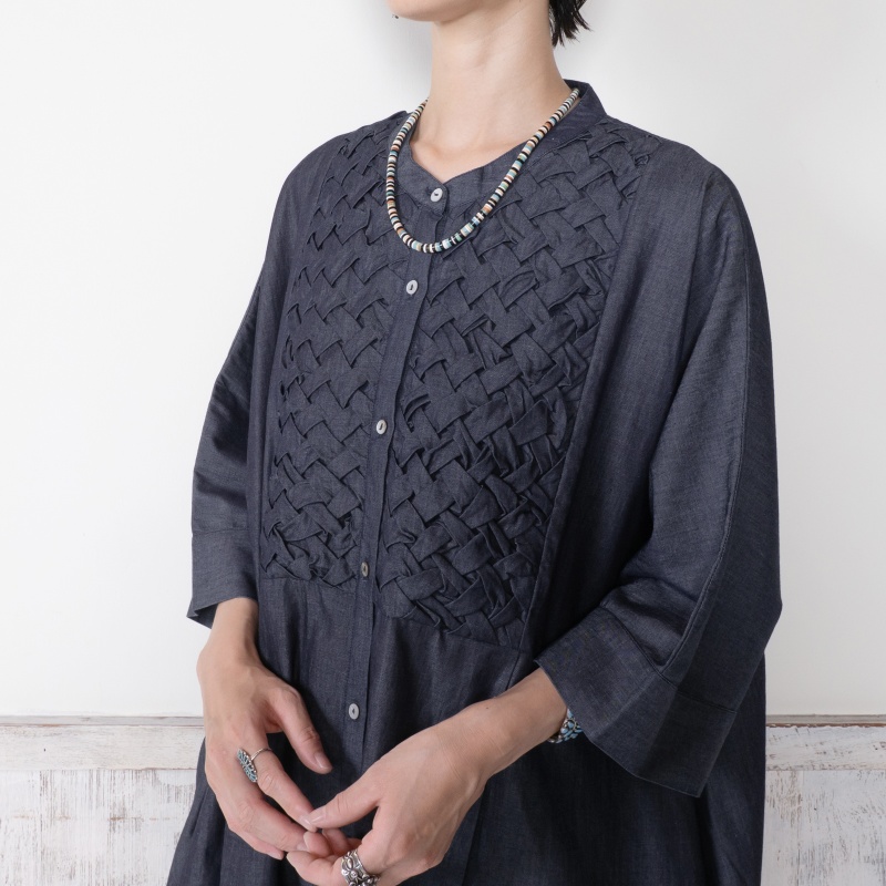 デニムスモッキングロングシャツ