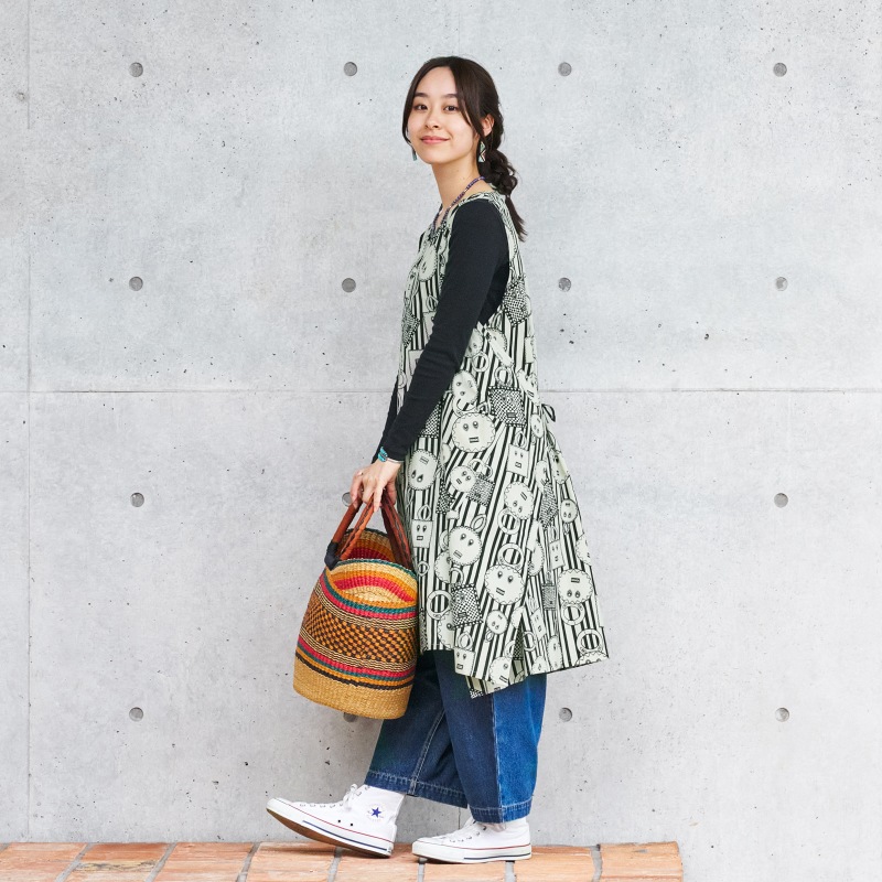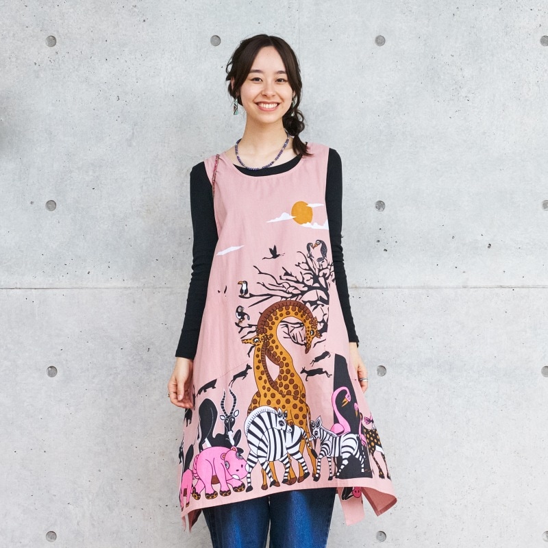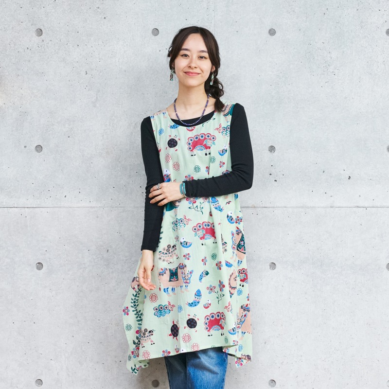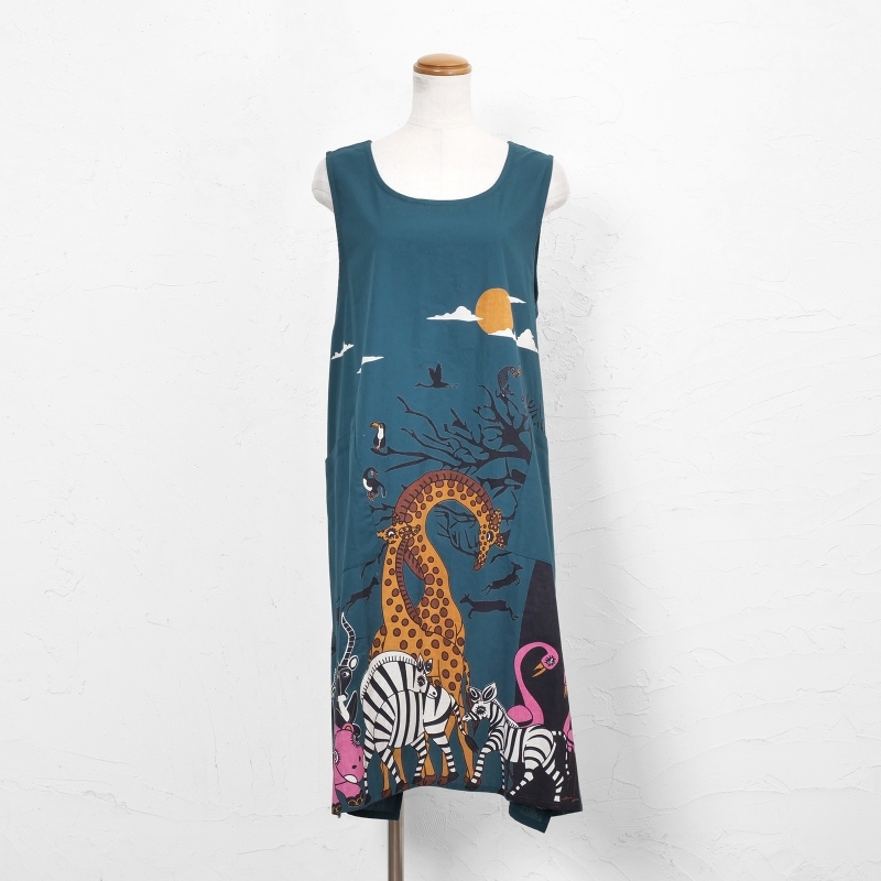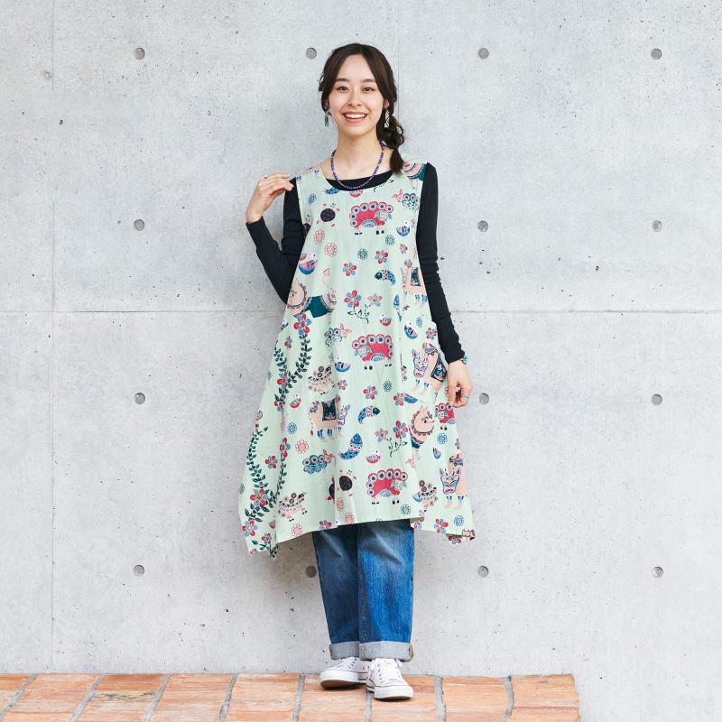 定番のエプロンワンピースにユニークな柄物が登場しました