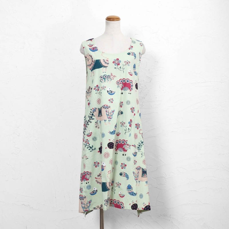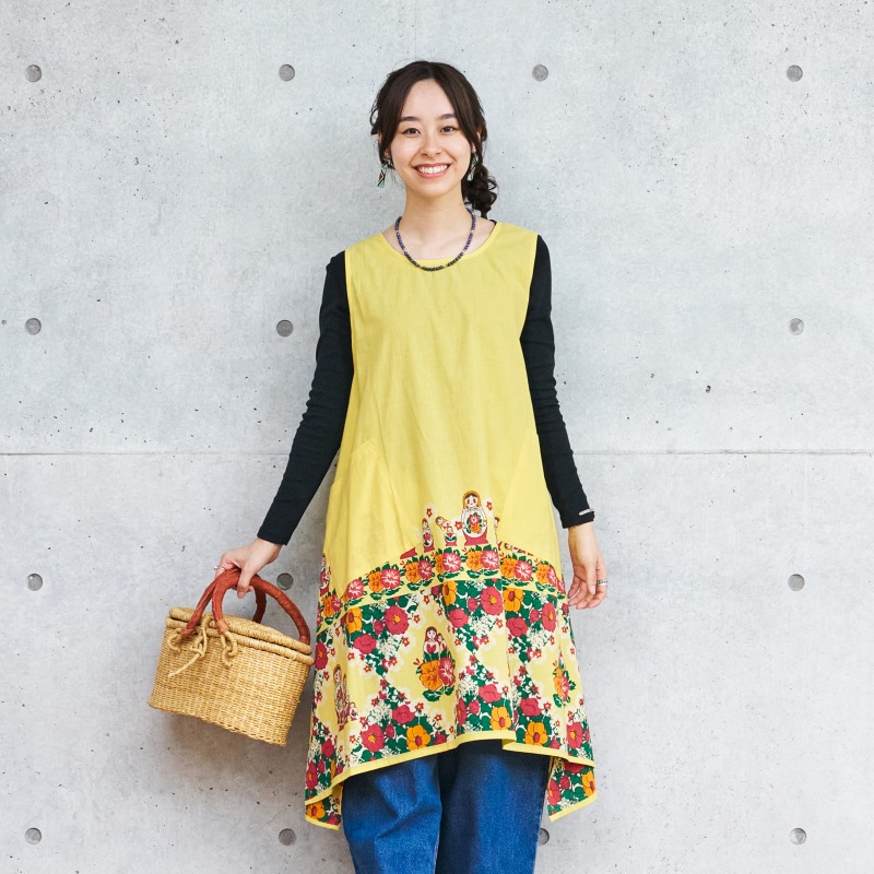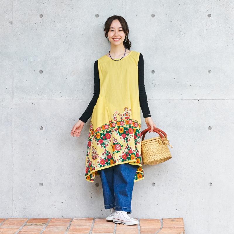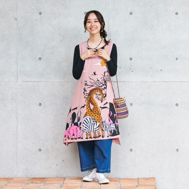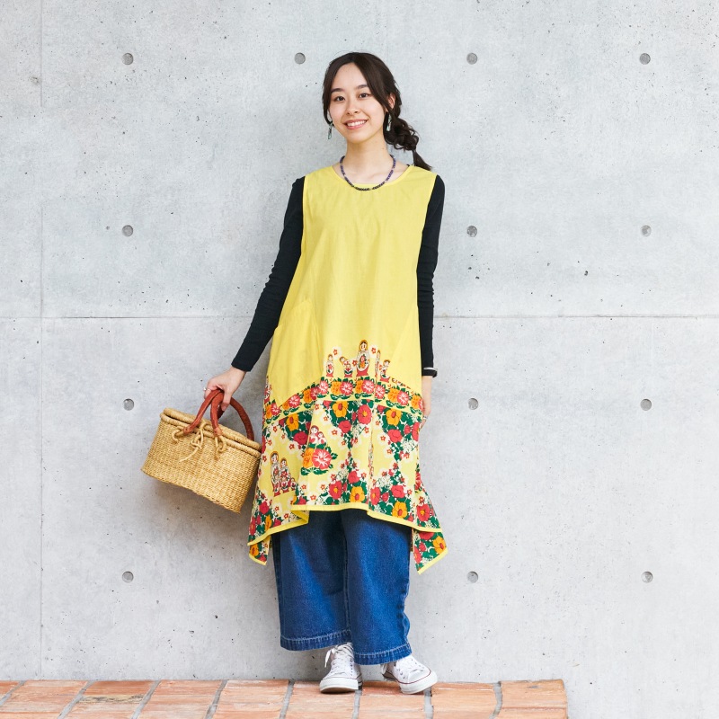 定番のエプロンワンピースにユニークな柄物が登場しました