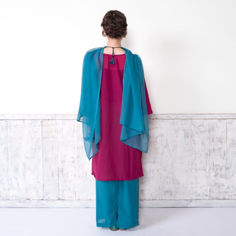 上着・パンツ・長めのショールの3点セットを基本としたインドの代表的な民族衣装です。