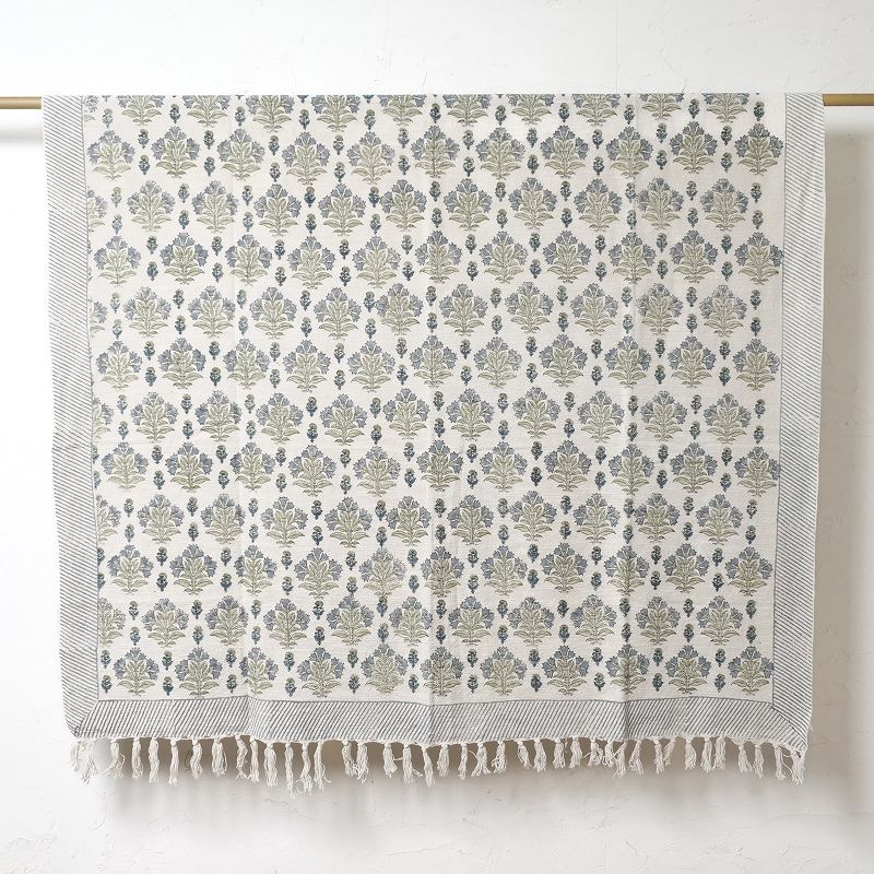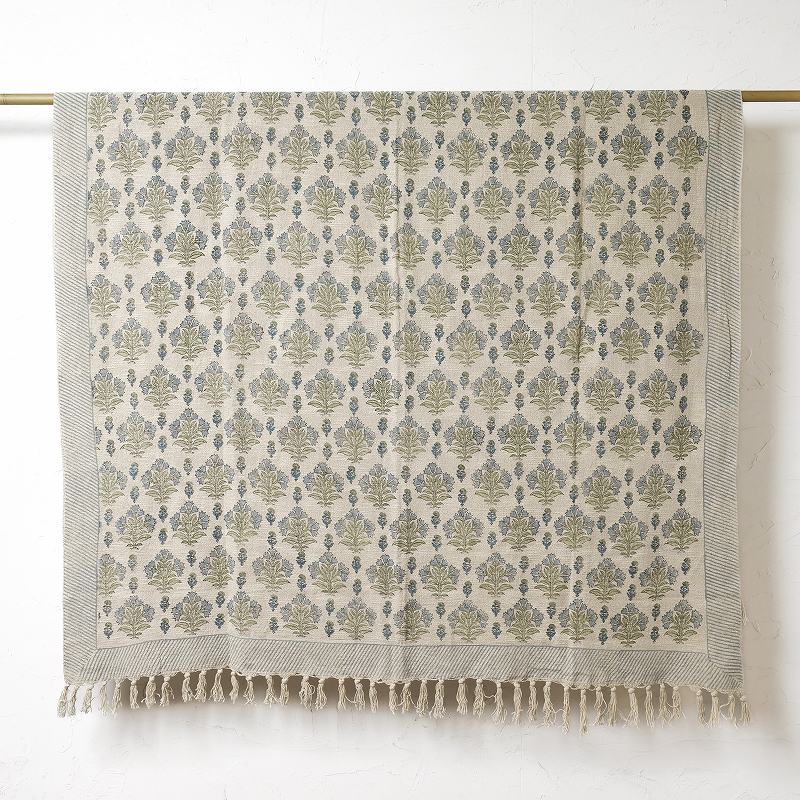ブロックプリント手織りコットンマルチクロス