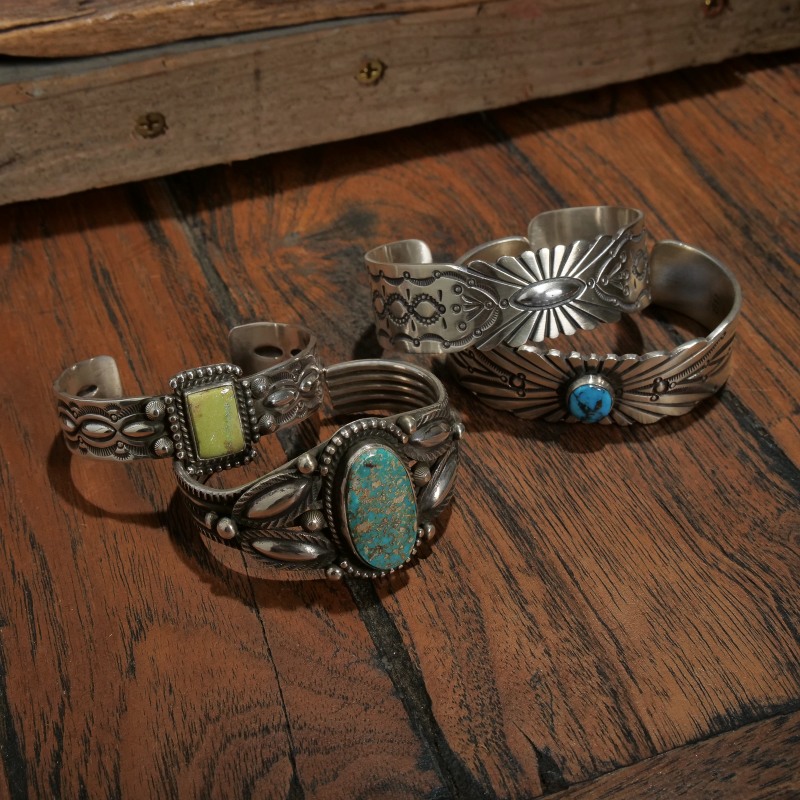 ナバホ族。1964年生まれ。1981年制作開始。師はシルバースミスだった母。得意とするのはオールドスタイルのスタンプワーク。まじめな性格そのままに均等で正確なスタンプを身上とします。重厚感のある彼のジュエリーは現地でも人気があり、他のシルバースミスからも一目置かれた存在です。