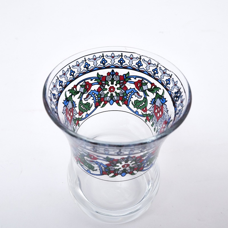 | ご注意 | ※現地では、熱いお茶を飲む用に使用されておりますが、耐熱ガラスとして品質保証されているものではありません。80℃位までは使用できますが、急激な温度変化には弱いです。そのため、急冷や急温および電子レンジには対応しておりません。 (電子レンジ使用不可) ※プリントのはがれの要因となりますので、洗浄の際はやわらかいスポンジでやさしく洗ってください。 |