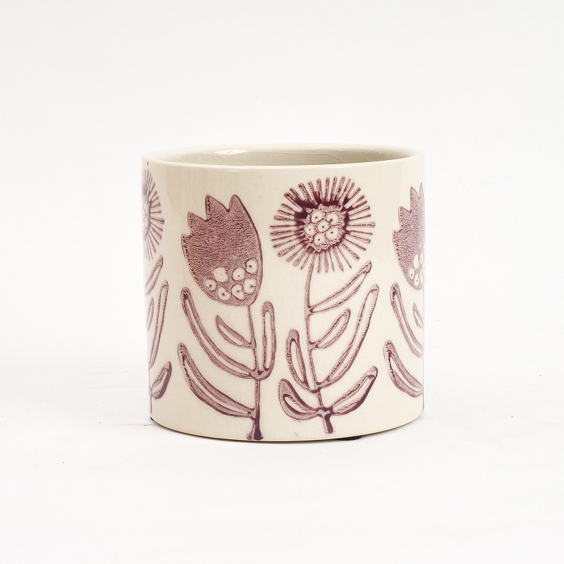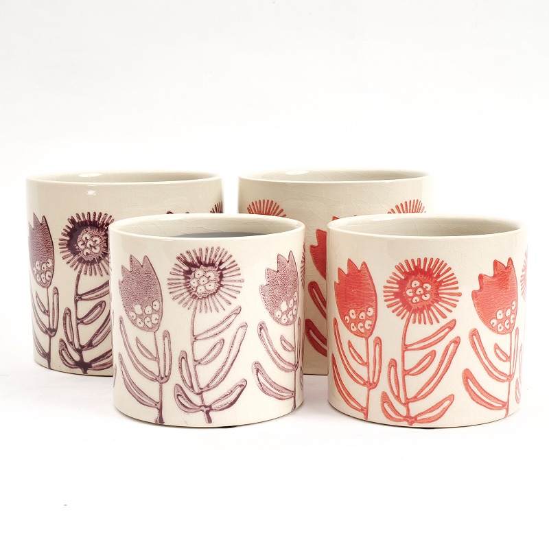フラワースタンプセラミックプランター 植木鉢 4.5号鉢
