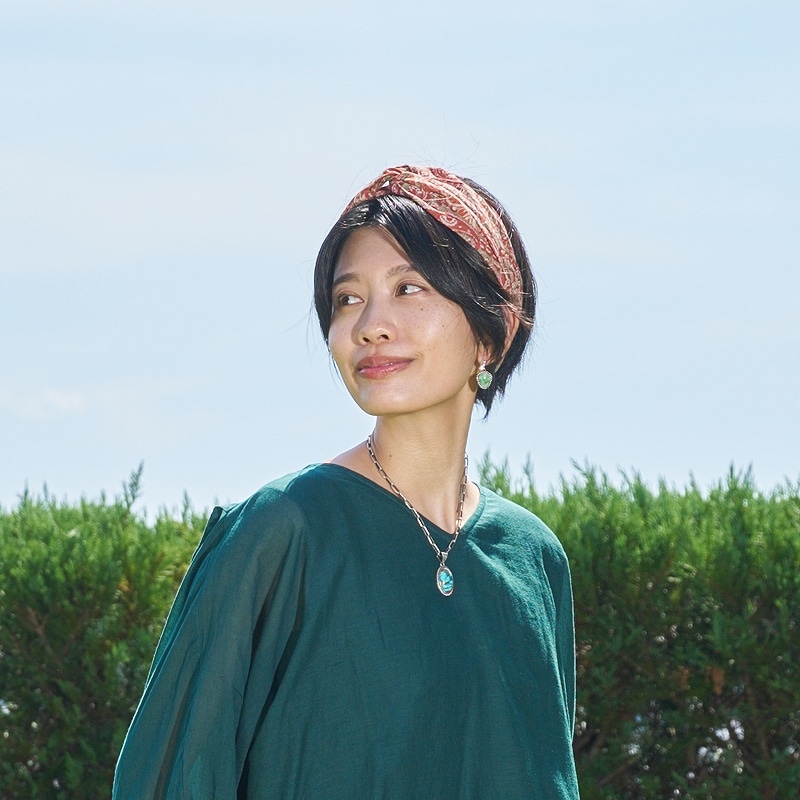 頭への締めつけ感もなく、色味も自分の顔に合っていて、とても気に入っています。 髪をまとめている事が多いので、それに合わせて帽子以外のオシャレを、楽しみたいと思います。
