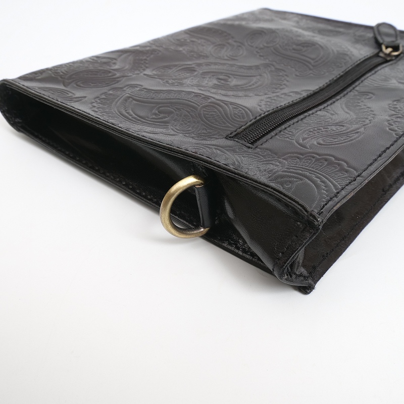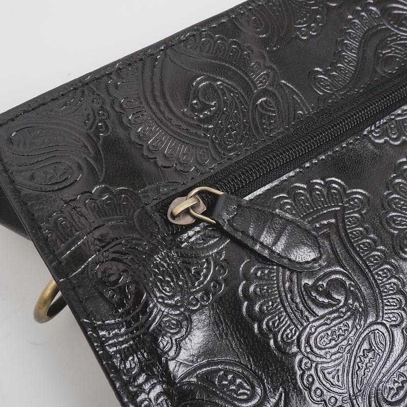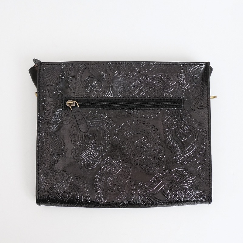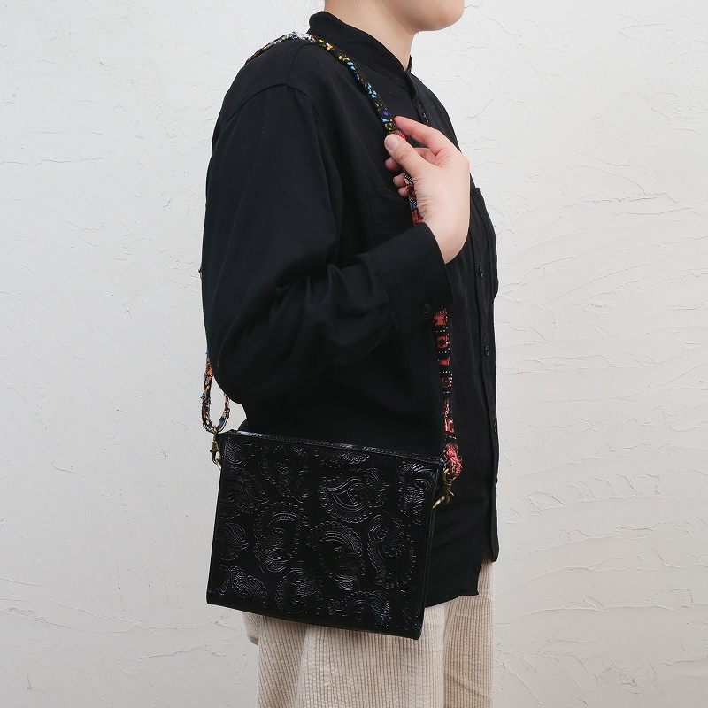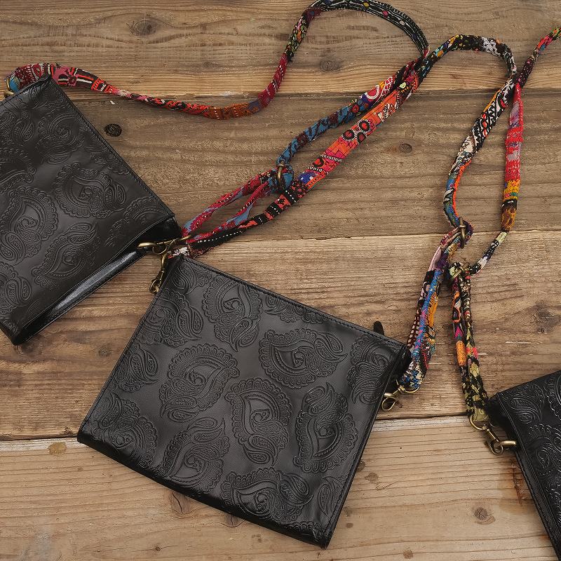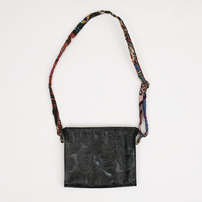 パキスタン古布×ペイズリー柄エンボスレザーの山羊革ショルダー