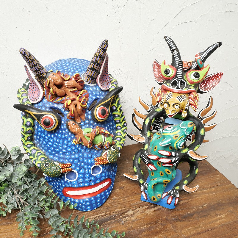 インパクト大の鬼のお面や龍のような生き物などなど。