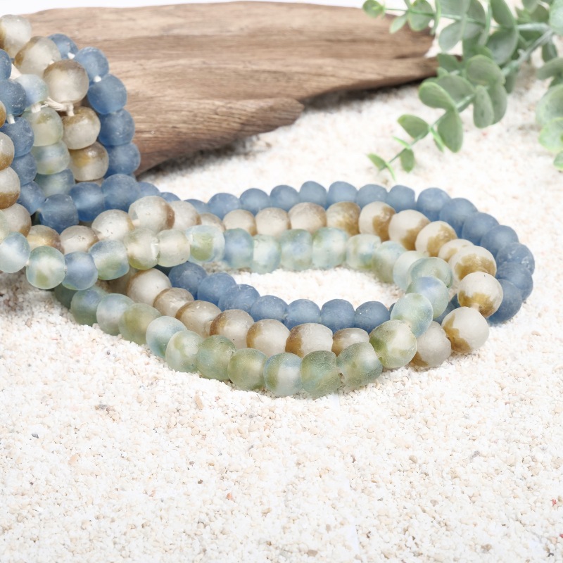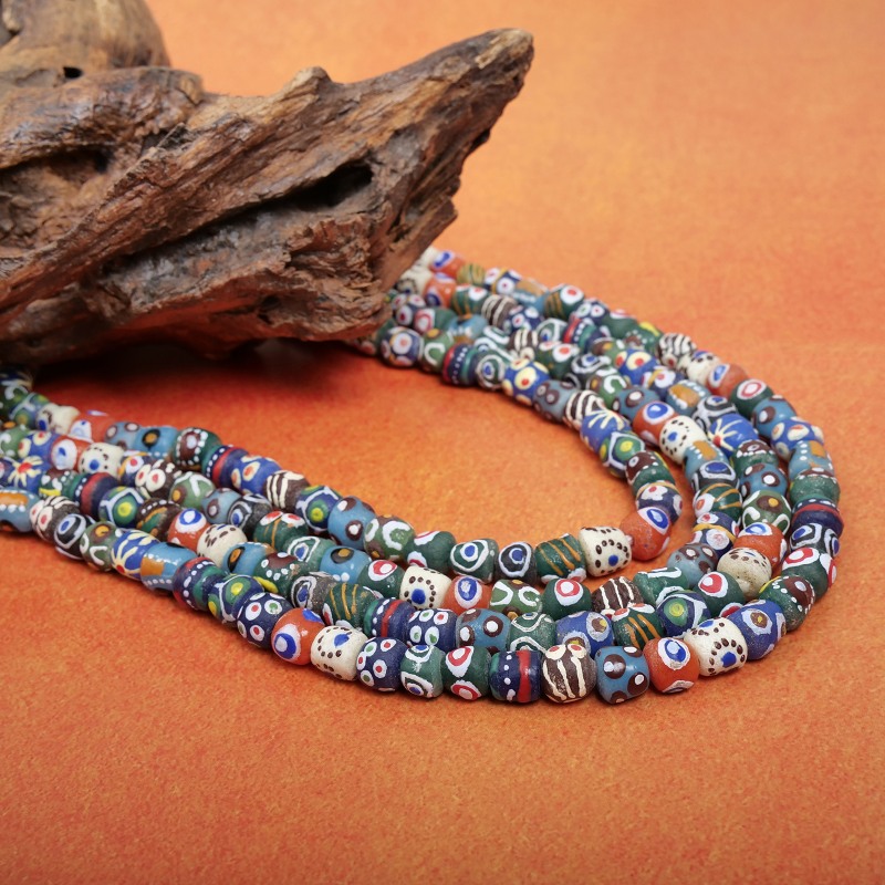 アフリカのクロボ族やアシャンテ族によって作られるガラスビーズは、どちらもガラスを細かく砕き再形成したもの。製法によって全く異なるビーズの雰囲気をお楽しみください。